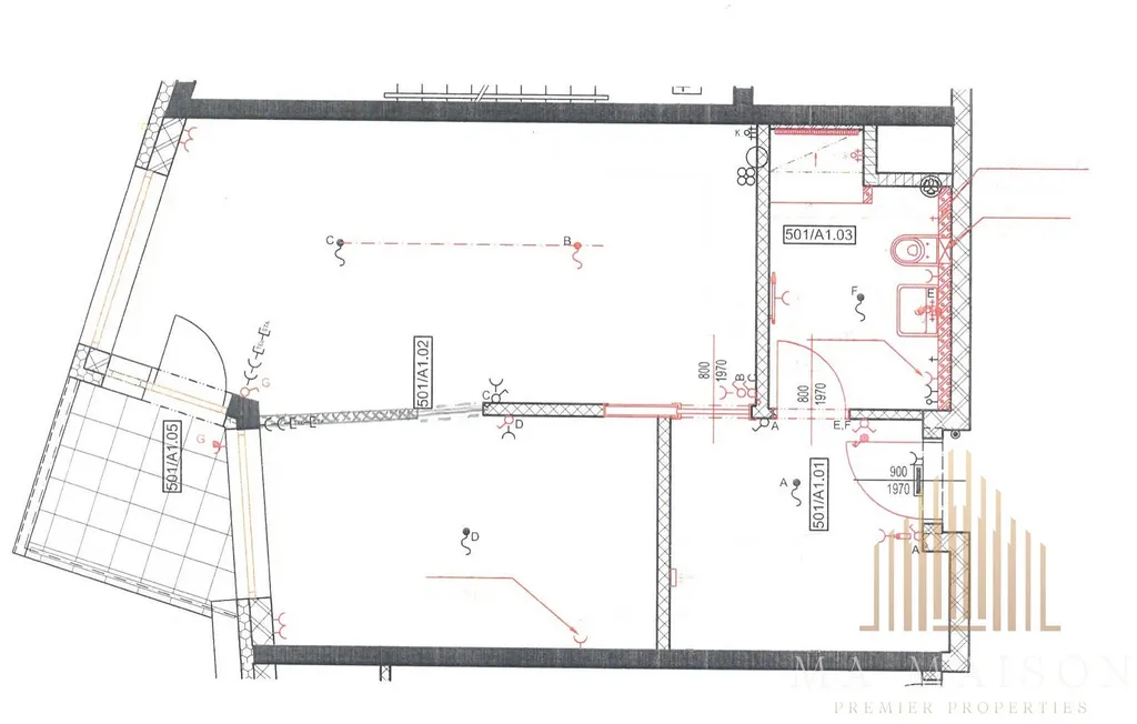 Byt se nachází v 5. nadzemním podlaží budovy a sestává: z velmi prostorné vstupní chodby s vestavěnou šatní skříní, koupelny se sprchovým koutem walk-in, toaletou s bidetovou sprškou, umyvadlem se zrcadlem a skříňkou, přípojkami na pračku a sušičku, dále z obývacího pokoje s kuchyňským koutem (plně vybaveno), z ložnice se šatní skříní. Kromě postele je byt kompletně vybaven: veškeré spotřebiče (myčka, trouba, varná deska, lednice, mrazák) včetně startovacího nádobí, jídelní stůl se židlemi, rozkládací pohovka s konferenčním stolkem, komoda pod TV. Interiérové žaluzie včetně dvouřadé garnýže, moderní osvětlení, světová orientaci na jih a východ, zasklení terasy.