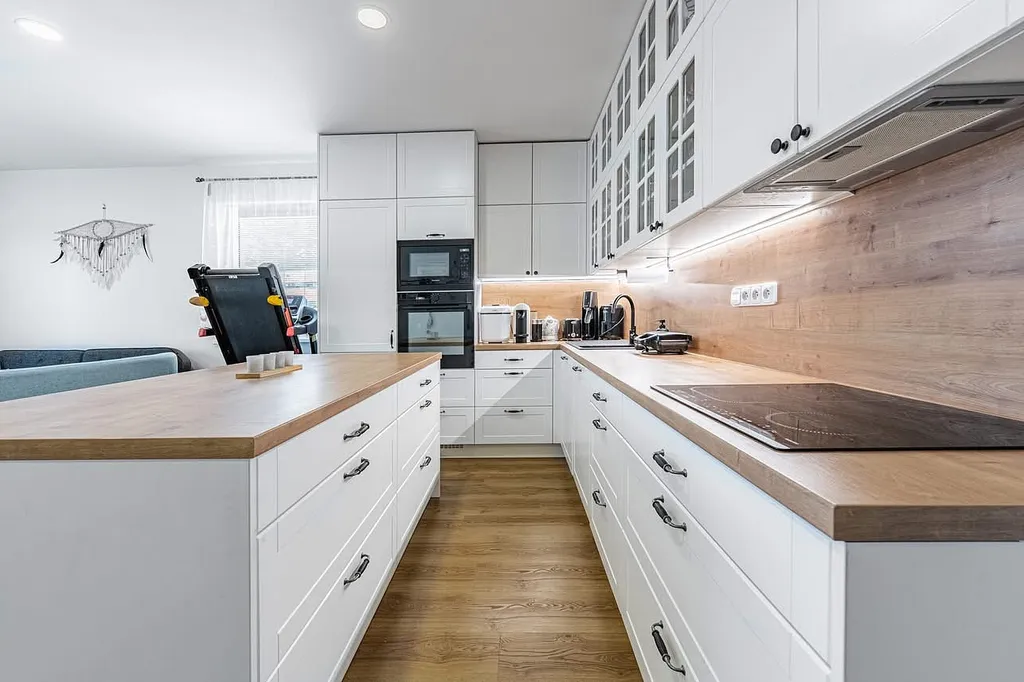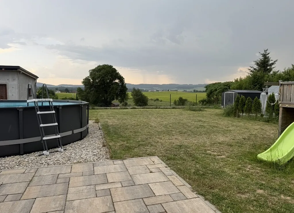 Dům je řešen jako přízemní s půdou vhodnou pro uskladnění věcí. Objekt je bez podsklepení s užitnou plochou 98,3 m² a celkovou zastavěnou plochou 119,5 m². Okolní zahrada o ploše 797 m² je dostatečně veliká pro umístění herních prvků (trampolína, hrad, skluzavka, lezecká stěna …) pro děti stejně tak jako pro vytvoření dalšího posezení s přáteli u ohniště. Stavba je realizována moderním certifikovaným systémem dřevostavby Rigips s kvalitním zateplením a sendvičovými obvodovými stěnami, které zajišťují výborné tepelně – izolační vlastnosti a nízké náklady na vytápění po celý rok. Náklady na elektrickou energii spotřebovanou na topení, osvětlení a provoz všech spotřebičů jsou dlouhodobě do 5 tis/měsíc. Dům je stavebně připravený i k instalaci krbových kamen (komín). Dispozice domu odpovídá potřebám současného rodinného života – otevřený obývací prostor s plně vybavenou kuchyní s velkým pracovním ostrovem a velkými prosklenými výhledy do zahrady. Dále ložnice rodičů, dva samostatné dětské pokoje, pracovna, technická místnost a koupelna s WC. Podlahy v obytných místnostech jsou provedeny z kvalitních materiálů pro snadnou údržbu, v koupelnách a technické části je keramická dlažba. Okna a vstupní dveře jsou plastová s trojsklem a jednostranným dřevodekorem, který příjemně dotváří styl interiéru. Vytápění domu je řešeno tepelným čerpadlem vzduch – voda (cca 7 kW) s podlahovým vytápěním, což zajišťuje komfortní teplotu a velmi nízké provozní náklady. Koupelna je navíc doplněna topným tělesem. Větrání je přirozené pomocí oken. Dřevostavba je provedena z maximálně kvalitních KVH hranolů, s minerální izolací a kontaktním zateplovacím systémem – dům tak splňuje moderní standard energeticky úsporného bydlení, čemuž odpovídá zařazení objektu do klasifikační třídy C z hlediska energetické náročností budov – PENB. Valbová střecha se sklonem 25° je osazena krytinou Betonpres v břidlicově černém odstínu, přispívající k elegantnímu vzhledu domu. Fasáda je navržena ve světle béžovém tónu s tmavším soklem – kombinace působí moderně a nadčasově. Dešťová voda je zachytávaná do podzemní nádrže. Následně je využívaná k zalévání zahrady a provozu WC Stavba stojí na rovinatém pozemku v klidné části obce, s výborným příjezdem po veřejné komunikaci ve vzdálenosti 291 metrů (6 minut chůze) od zastávky MHD. Objekt je napojen na systém veřejného vodovodu a kanalizace. Místo je ideální pro rodiny s dětmi – v blízkosti je příroda, cyklostezky a ve Strakonicích kompletní občanská vybavenost (školy, školy, obchody, lékaři, služby).
