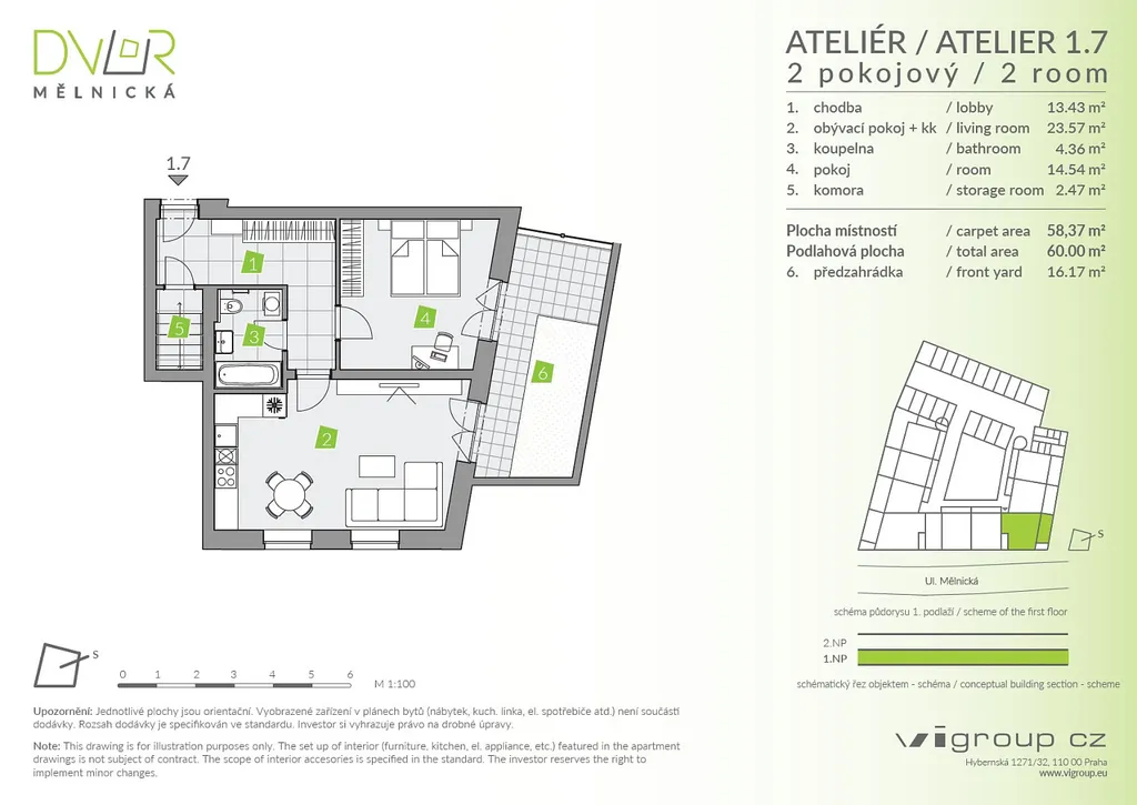 Nabídka je součástí developerského projektu Dvůr Mělnická.