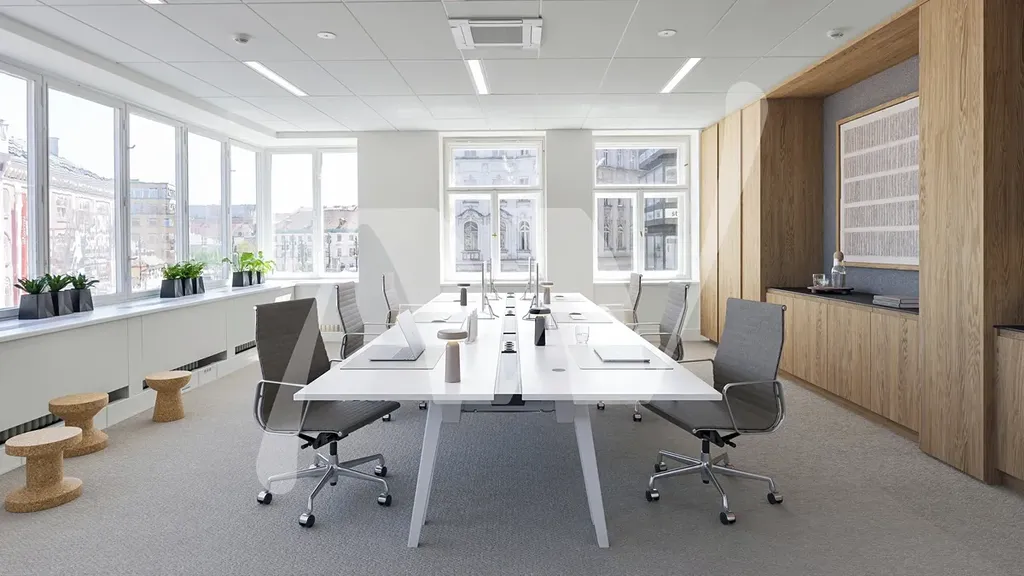 K pronájmu nabízíme kancelář industriálního charakteru o celkové velikosti 778 m2 umístěnou ve 3. patře budovy. Kancelář má výhledy na náměstí Republiky, Revoluční ulici a do vnitrobloku.