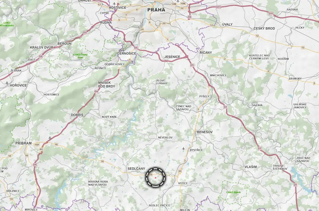 Celková výměra prodávaného pozemku činí 7 804 m².