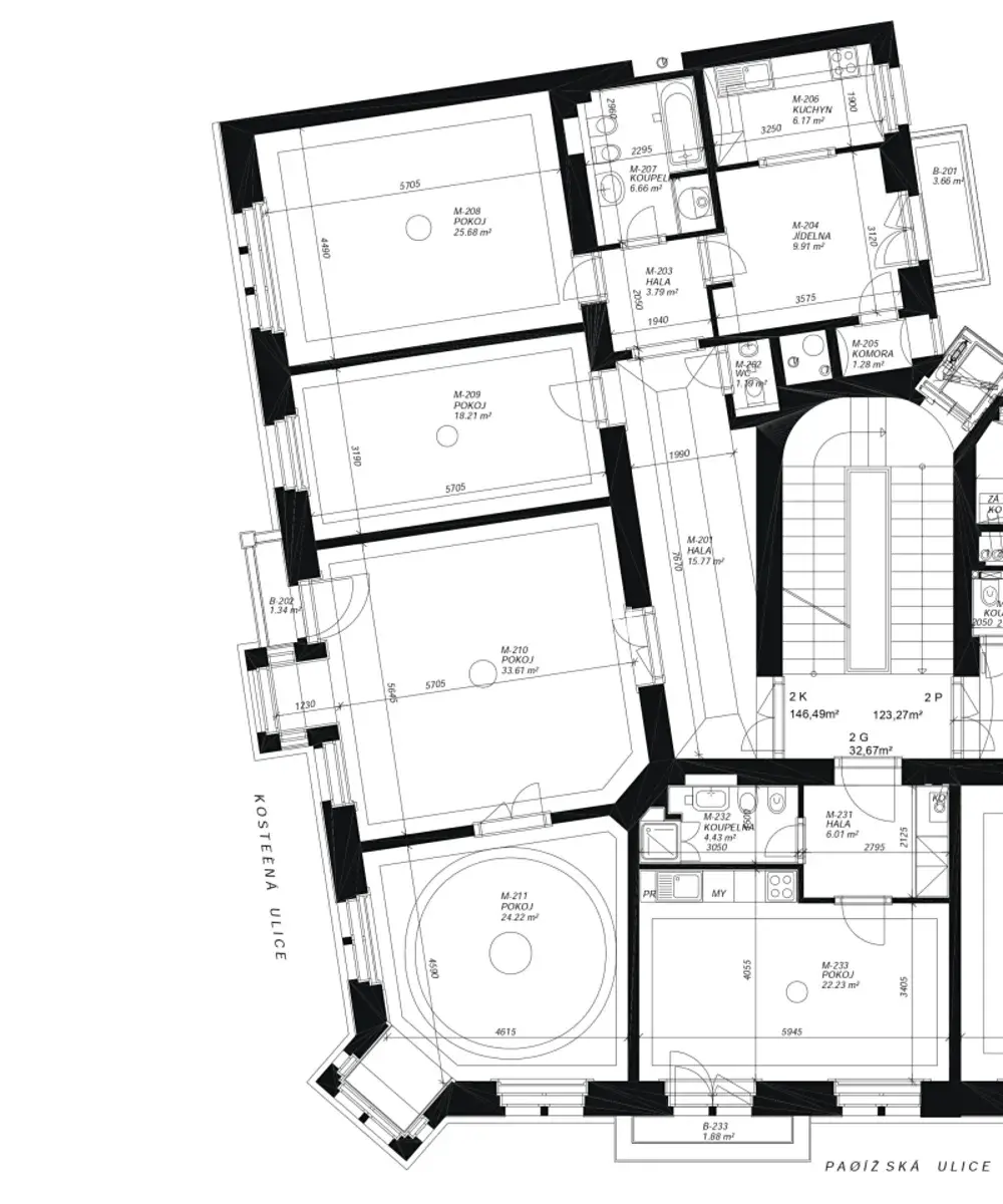 Ikona mezi prestižními ulicemi Prahy, disponující nepřeberným množstvím luxusních obchodů a butiků – ulice Pařížská nacházející se na Starém Městě v lokalitě Josefov. Pravidelně ji můžeme naleznout v první desítce žebříčků nejdražších nákupních ulic světa. Na této nejexkluzivnější adrese metropole se nachází unikátní nezařízený byt 4+1 k pronájmu o velikosti 151 m2 hned se dvěma balkony.