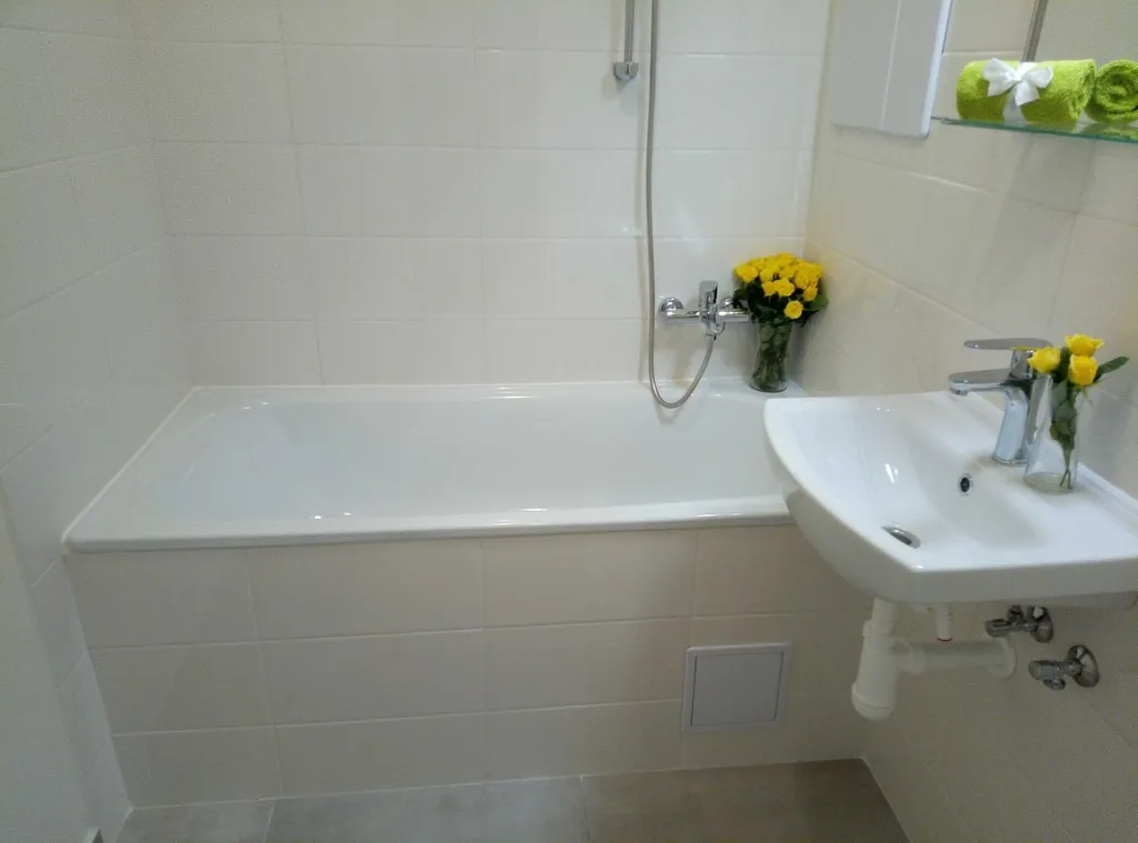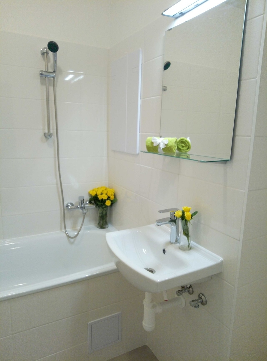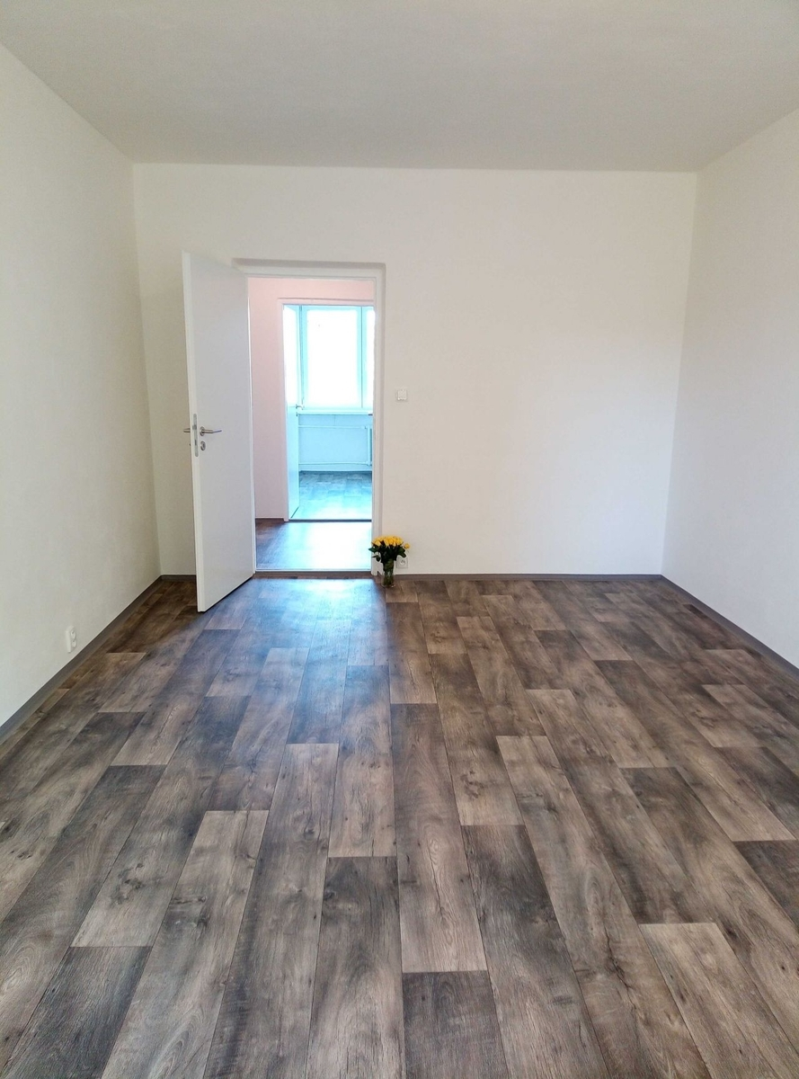 Byt prošel kompletní rekonstrukci v roce 2019 a nachází se v 2. patře z 11.podlažního panelového domu. Byt má vyzděné jádro, podlahy (PVC), rozvody, omítky, interiérové dveře. Koupelna s vanou a umyvadlem s možností připojení pračky, toaleta je odděleně. Kuchyňská linka je opatřena plynovým sporákem a elektrickou troubou. Vstup do komory je z kuchyně. V komoře může být umístěna myčka nebo pračka jsou zde připraveny rozvody.