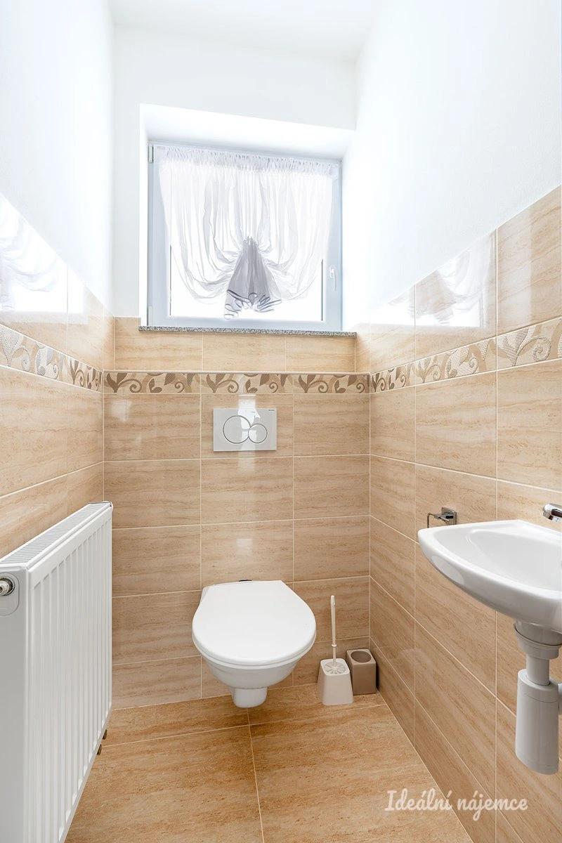 Interiér domu je nabízen jako částečně vybavený, což budoucím nájemníkům poskytuje skvělou příležitost doladit si domov podle vlastního vkusu a potřeb. Srdcem domu je samostatná kuchyně s jídelním koutem, která je plně vybavena všemi moderními spotřebiči včetně lednice s mrazákem, elektrické trouby, varné desky, myčky a digestoře. Světlý obývací pokoj disponuje pohodlnou sedací soupravou, konferenčním stolkem a praktickým úložným prostorem. Dispozici dále doplňují tři samostatné pokoje, které lze variabilně využít jako ložnici, dětské pokoje nebo pracovnu. Komfortní koupelna je vybavena vanou i sprchovým koutem, přičemž toaleta je pro větší soukromí umístěna samostatně.