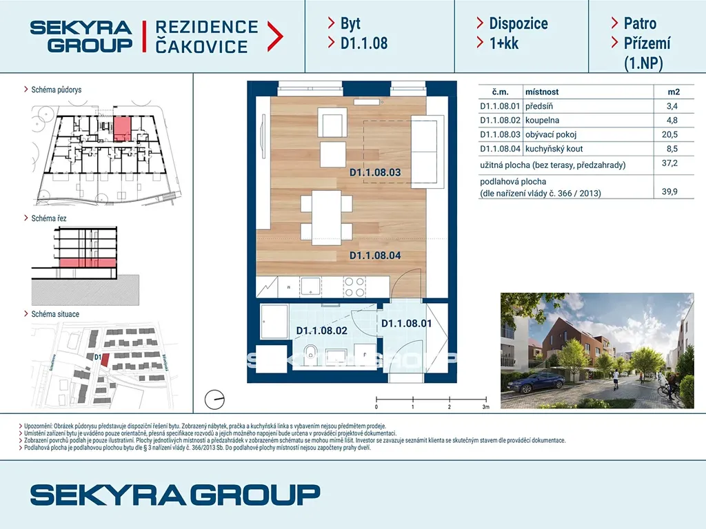 Dovolujeme si Vám nabídnout k prodeji byt 1+kk o výměře 39,9 m² v rezidenčním projektu Rezidence Čakovice, etapa B.