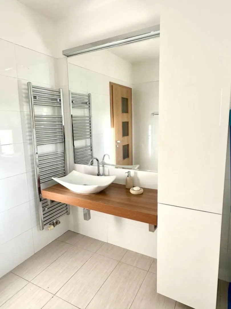 Koupelna je prostorná a komfortní, vybavená vanou. Toaleta je řešena samostatně.