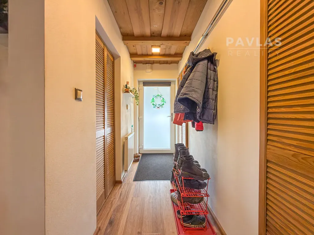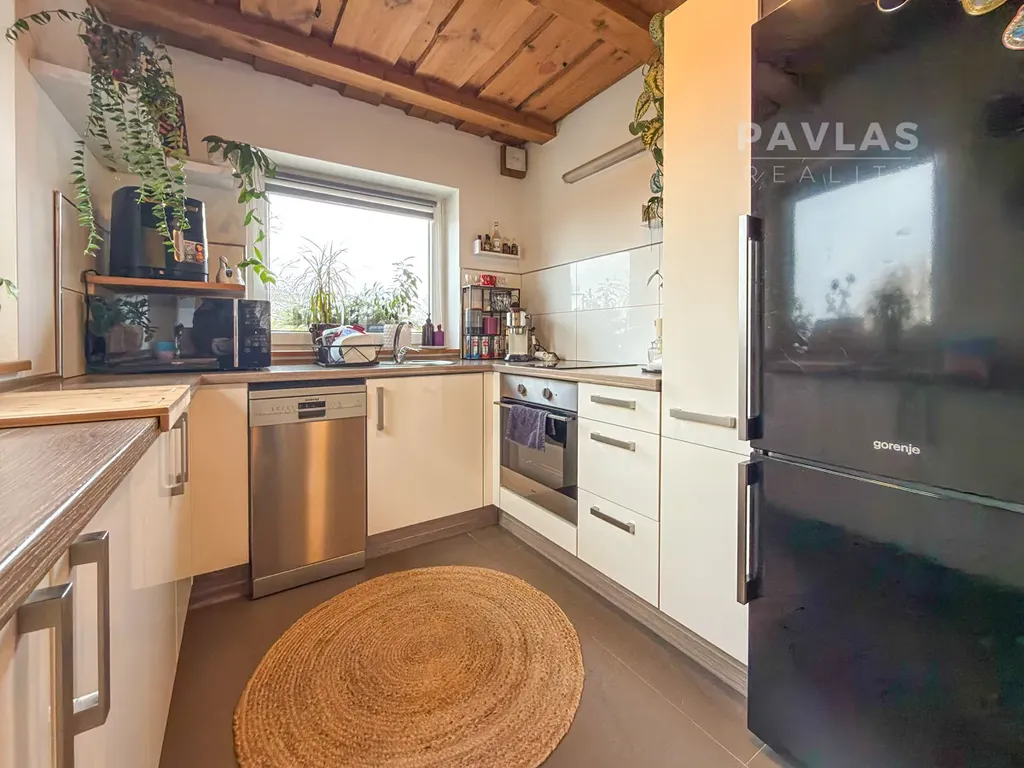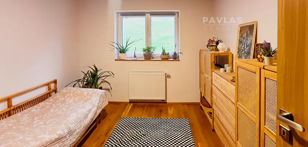 Uvnitř vás okamžitě osloví dřevěné stropy, které prostoru dodávají neopakovatelný charakter a pocit hřejivého domova. Srdcem domu je prosvětlený obývací pokoj s kuchyní, který díky velkým francouzským oknům plynule navazuje na prostornou terasu. Je to ideální místo pro ranní kávu nebo večerní sklenku vína. A když se ochladí? Praskání dřeva v krbových kamnech vytvoří atmosféru, kterou v bytě nezažijete.