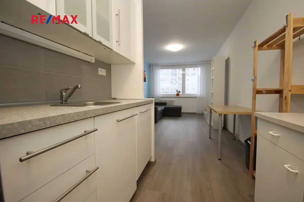 Byt je vybaven kuchyňskou linkou s lednicí, varnou deskou a troubou. Součástí vybavení je také pračka, umístěná v koupelně. Byt má novou vinylovou podlahu.