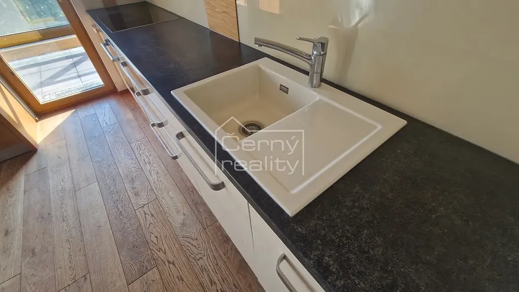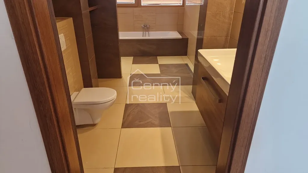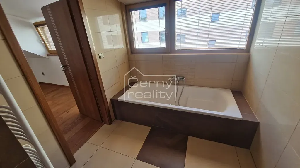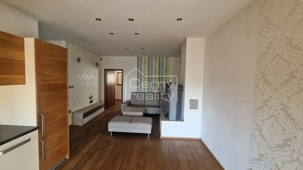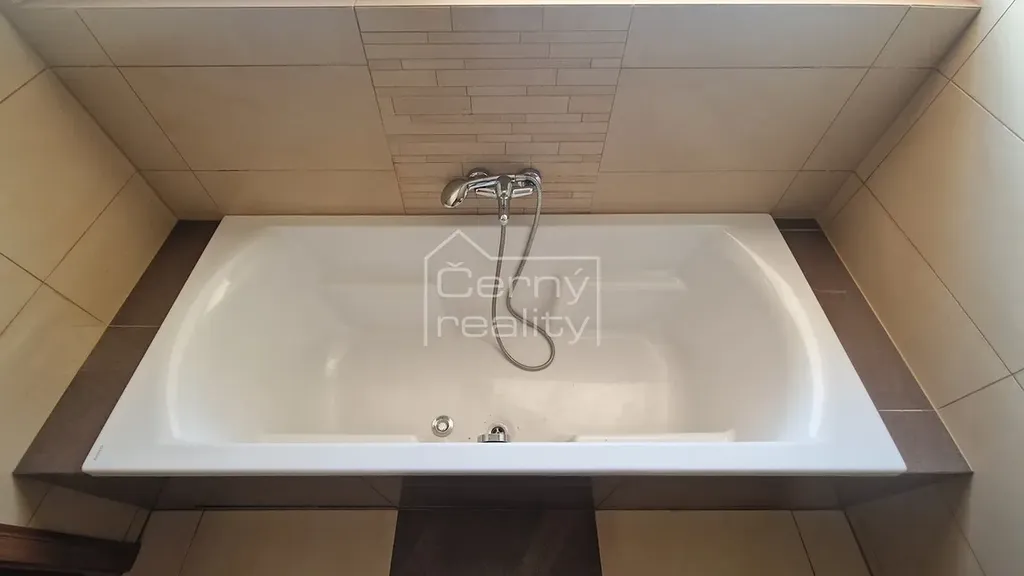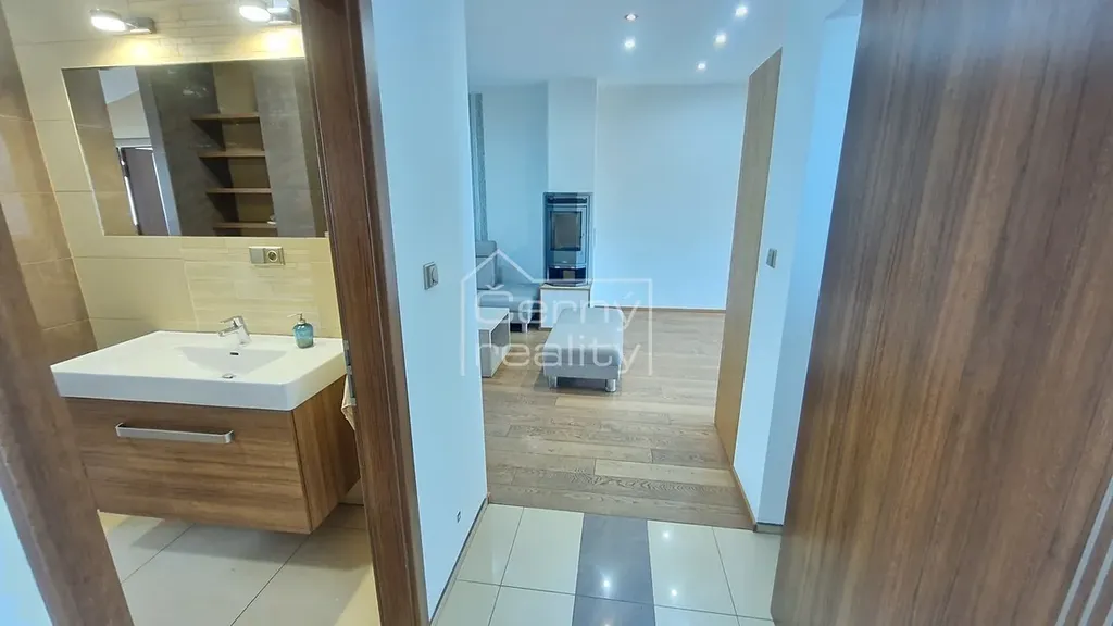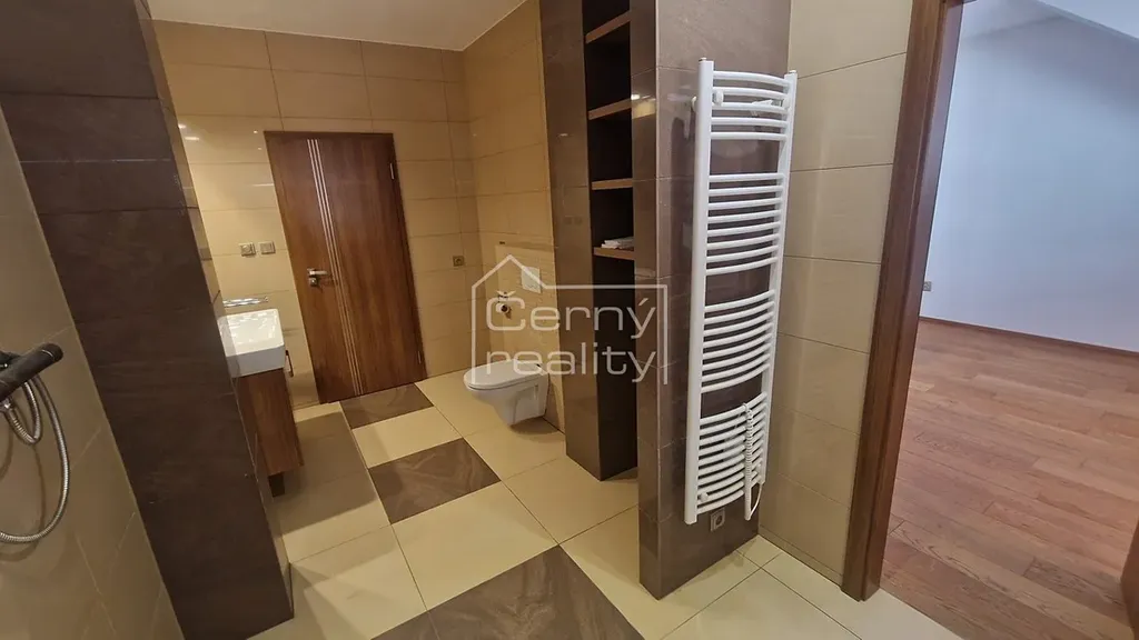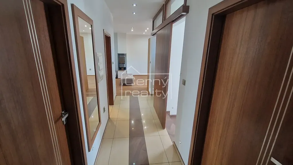 Pronájem luxusního bytu 4+kk (170 m2), z toho - byt (98 m2), terasa (16 m2), sklep 17 m2, chodba (12 m2), půda (30 m2). Dále je k dispozici a sdílená zahrada s pergolou a krbem (180 m2). Byt je umístěn v rodinném domě, do bytu se vchází společnou domovní chodbou, byt je oddělen vstupními dveřmi, za nimi se na chodbě nachází vestavěný botník a věšák, chodba o ploše 12 m2 se vstupem na zahradu, na chdobě lze umístit např. kola kočárek atp., z chodby je vstup i do klenbového sklepu, o ploše 17 m2.