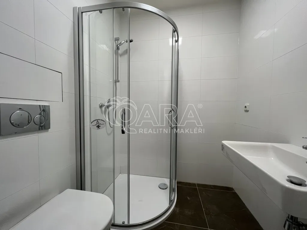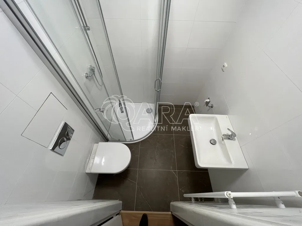 V bytě je kuchyňská linka, koupelna se sprchovým koutem, předsíňka a velký pokoj s okny přes celou stěnu. K bytu náleží sklepní kóje.