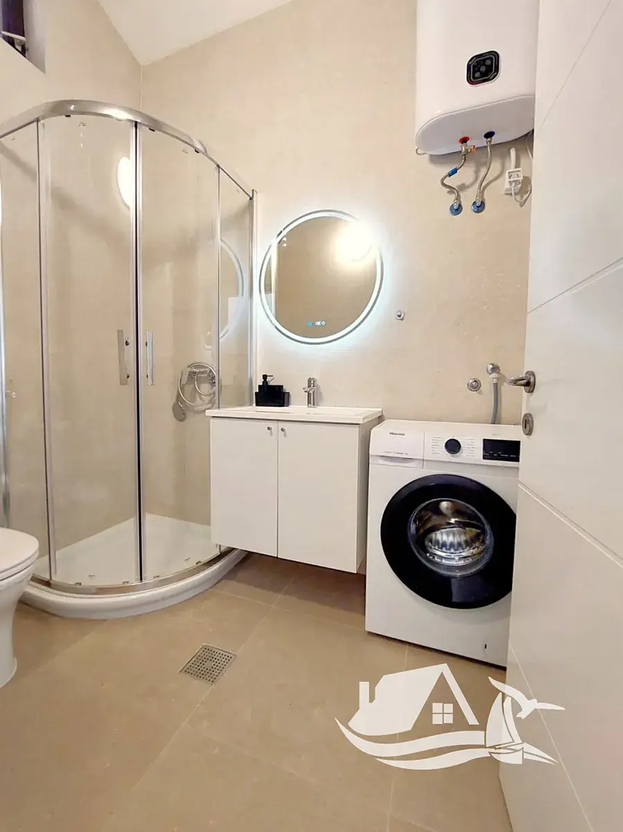 Apartmán se nachází ve 2. patře bytového domu a disponuje celkovou plochou 76,58 m². Dispozice je promyšlená a funkční. Nabízí dvě samostatné ložnice, obývací pokoj propojený s kuchyní a jídelnou, koupelnu se sprchovým koutem a balkon s otevřeným výhledem na moře.