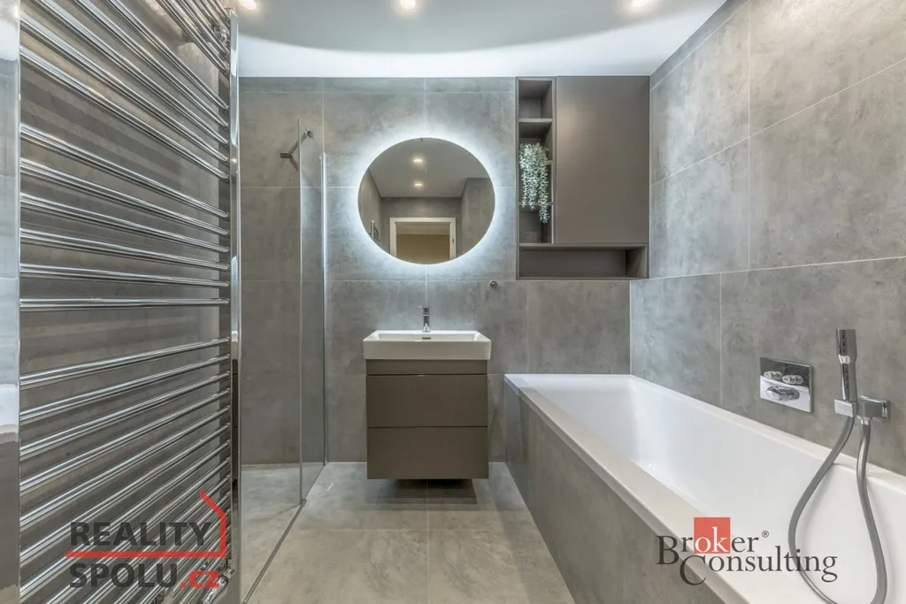 Dům má dvě koupelny – v přízemí se nachází koupelna se sprchovým koutem, toaletou a umyvadlem, v patře pak koupelna se sprchovým koutem, vanou a umyvadlem. Toaleta je řešena samostatně. Koupelny jsou v moderním stylu s kvalitní sanitou, samozřejmostí jsou vestavěné skříně a praktické úložné prostory.