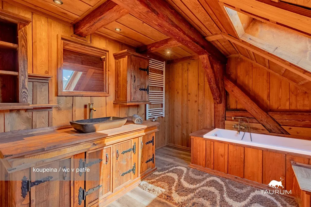 V patře je řada dalších místností a koupelna.