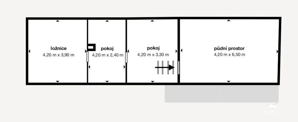 Dům má jedno nadzemní podlaží a upravené půdní prostory, které slouží k přespání a uskladnění věcí. Během posledních let prošel částečnou rekonstrukcí – nová koupelna s WC, nová střešní krytina, litinová kamna a fasáda. Obytná plocha činí přibližně 60 m² a najdete zde pokoj, menší místnost, kuchyni, koupelnu s toaletou a sprchovým koutem a skladovací prostory.