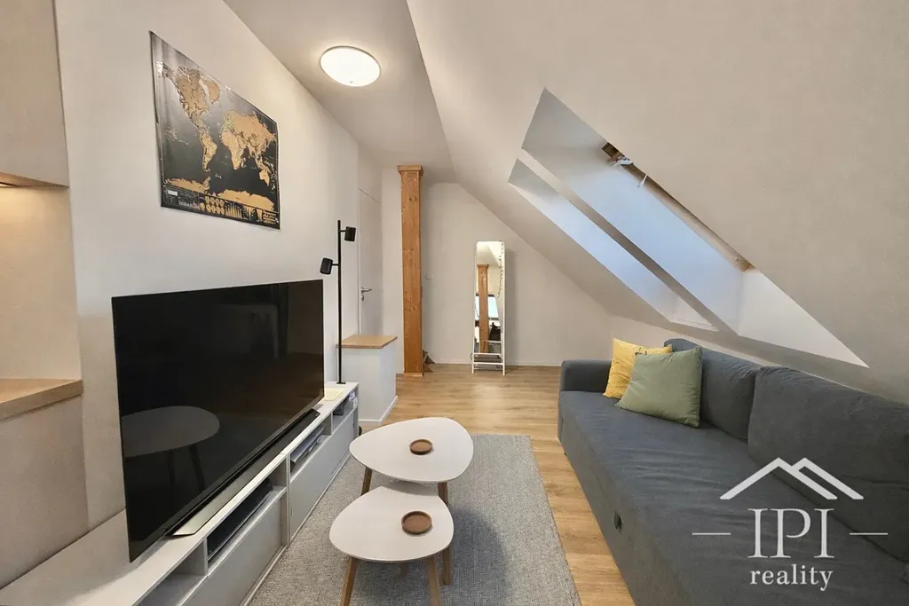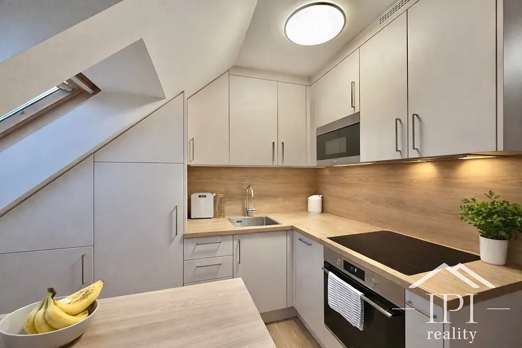 Dovoluji si Vám nabídnout ke koupi útulný, mezonetový byt po rekonstrukci, který je umístěn v 7. a 8. NP pěkného činžovního domu s výtahem a je v dispozičním členění 2+kk (atypický zrekonstruovaný mezonet) o celkové podlahové ploše 53 m2. Jedná se o bytovou jednotku, vzniklou vestavbou do půdního prostoru v roce 2001, nyní těsně po rekonstrukci (nová koupelna, podlahy, nová kuchyňská linka a vestavěná skříň). Vytápění a ohřev TUV je kondenzačním plynovým kotlem.