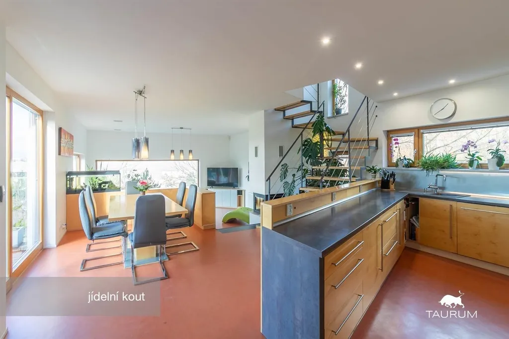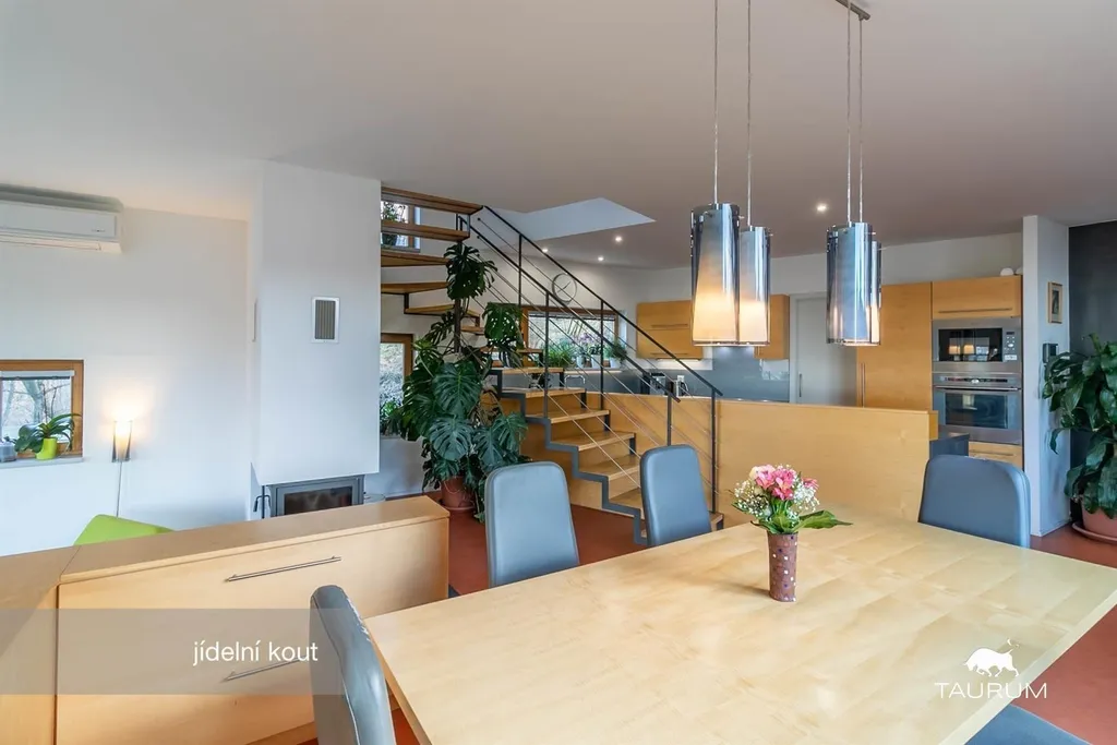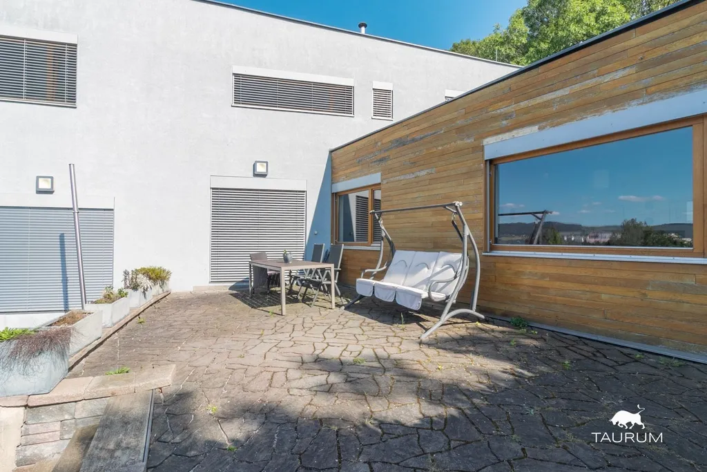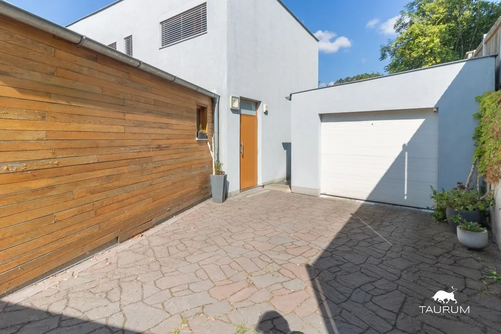 Obytná část domu je o dispozici 5+kk, užitná plocha je 176 m2, dům není podsklepený. Má dvě nadzemní podlaží a garáž pro jeden automobil. Prostorná terasa 30 m2, která zajištuje naprosté soukromí má navíc plachtové stínění proti západnímu slunci.