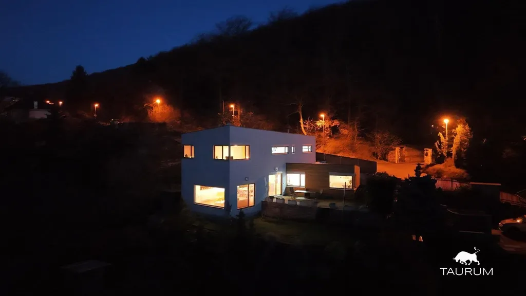 Dům, dokončený v roce 2010 podle návrhu renomovaných architektů z kanceláře 3+1 architekti, v sobě nese jedinečné kouzlo tohoto místa. Architekti s precizností využili fantastický výhled a dosáhli maximálního soukromí, čímž vytvořili jedinečný celek. Každý detail návrhu byl pečlivě promyšlen s ohledem na výhody tohoto ojedinělého místa. Skutečná krása však vynikne až v momentu, kdy se pohodlně usadíte v křesle, za vámi praská dřevo v krbu, a před vámi se otevírá úchvatný pohled do údolí s horizontem zdobeným pásy Krušných hor (31architekti).