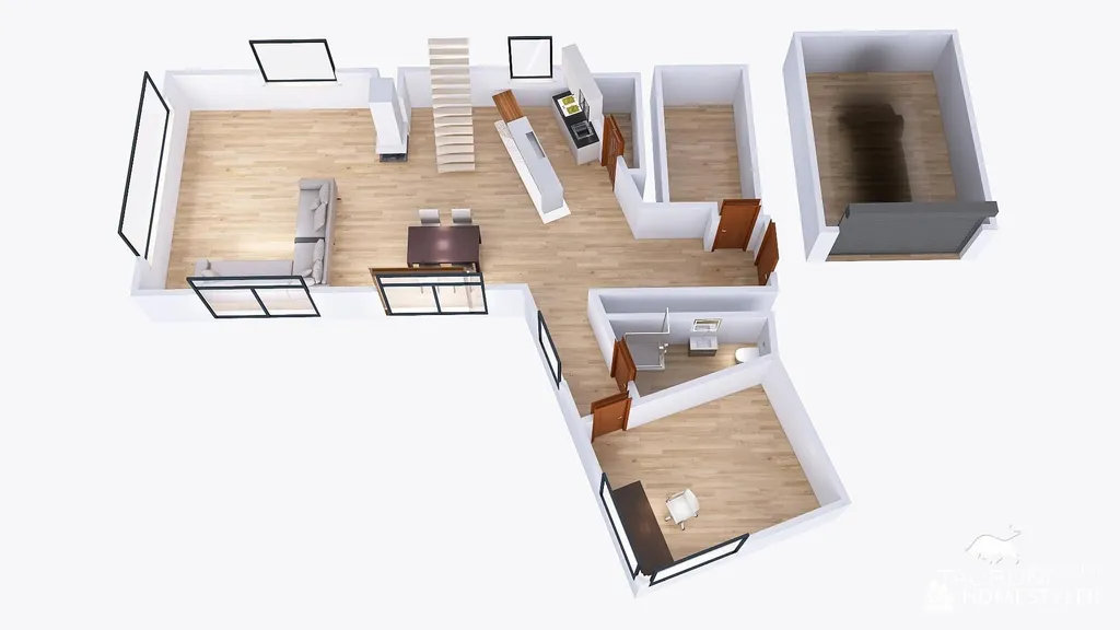 • V obývacím prostoru je trojstěnný krb s vyvložkovaným komínem