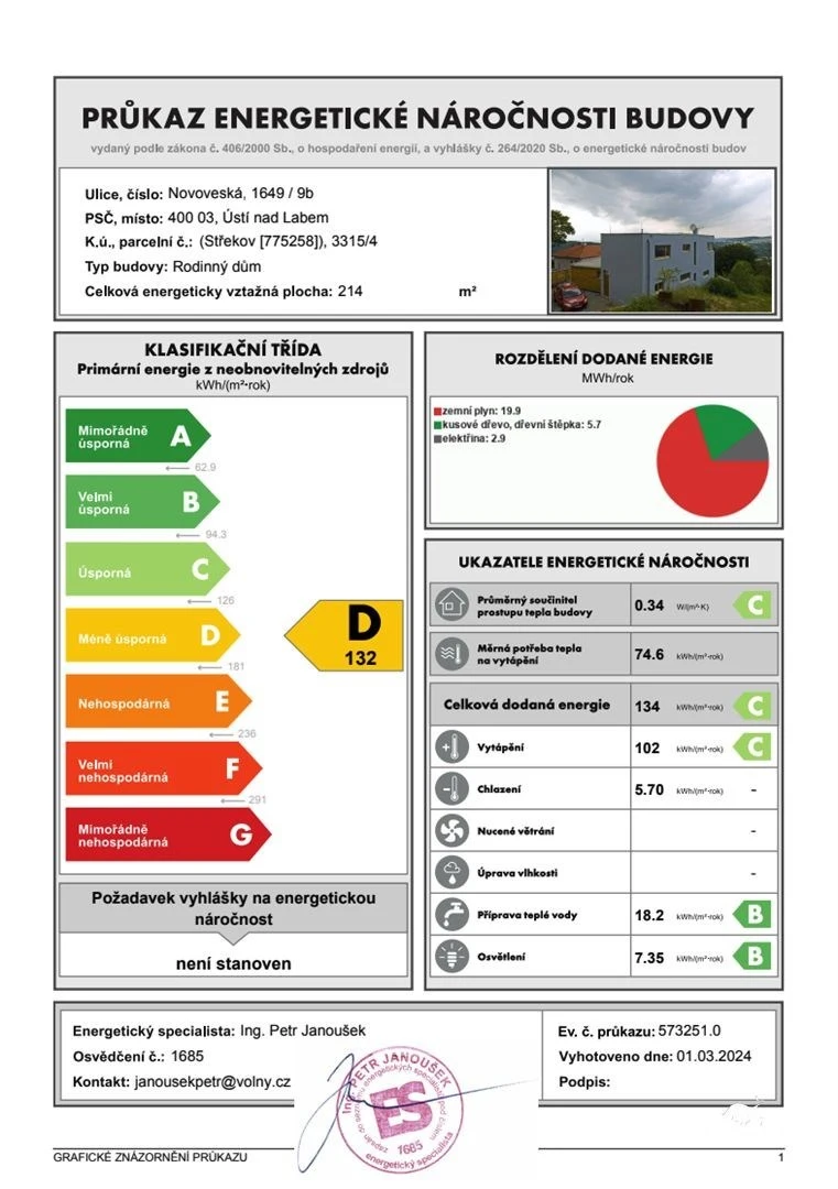 • Vytápění zajištěno plynovým kotlem v kombinaci s teplovodním podlahovým vytápěním v 1. NP + koupelna a WC ve 2. NP