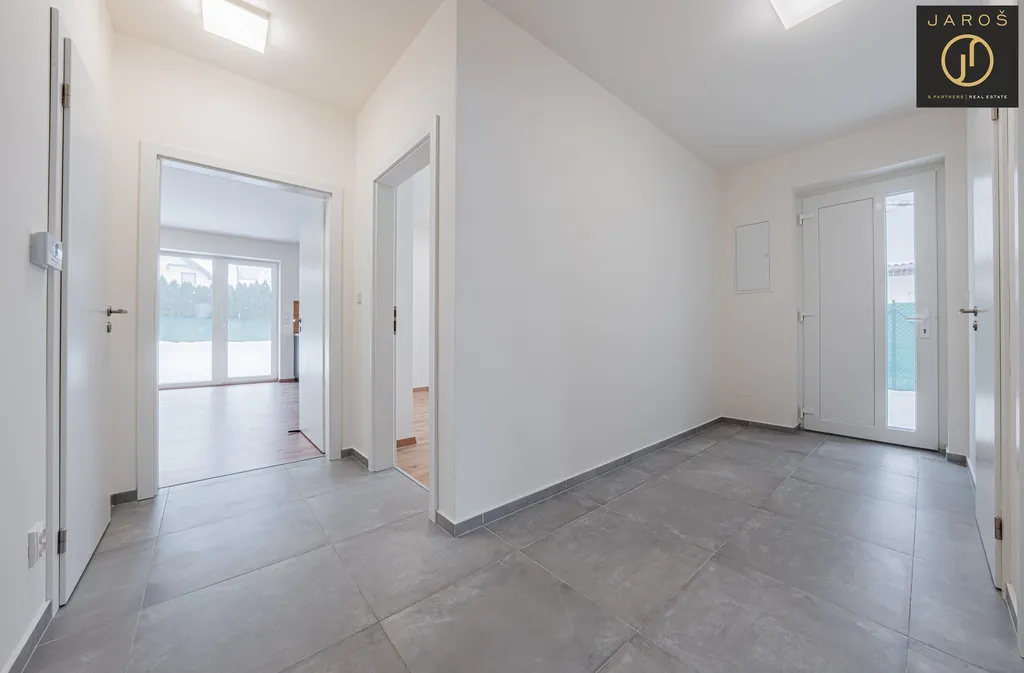 Dům byl kolaudován v květnu 2023 a je postaven z kvalitních materiálů, které zajišťují nízké provozní náklady a dlouhodobou životnost. Dispozice domu je velmi praktická a promyšlená. Po vstupu do nemovitosti vás přivítá prostorná chodba, ze které je přístup do tří ložnic, dvou koupelen a technické místnosti. Dominantou domu je světlý obývací pokoj s kuchyňskou linkou, vybavenou vestavnými spotřebiči, odkud je přímý vstup na terasu a udržovanou zahradu, ideální pro relaxaci i rodinné posezení.