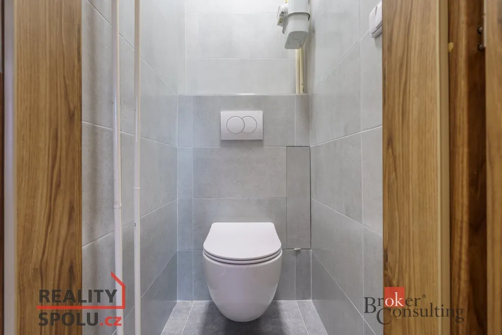 Byt právě prošel částečnou rekonstrukcí – působí čistě, moderně a je připraven k nastěhování. Dispozice je praktická: samostatná kuchyně, dva neprůchozí pokoje, koupelna a oddělené WC. Koupelna je řešena v moderním šedém tónu, včetně sprchového koutu a umyvadlové skříňky; toaleta je samostatná. Kuchyně je vybavena kuchyňskou linkou a spotřebiči, dostatek prostoru zůstává i pro jídelní stůl.