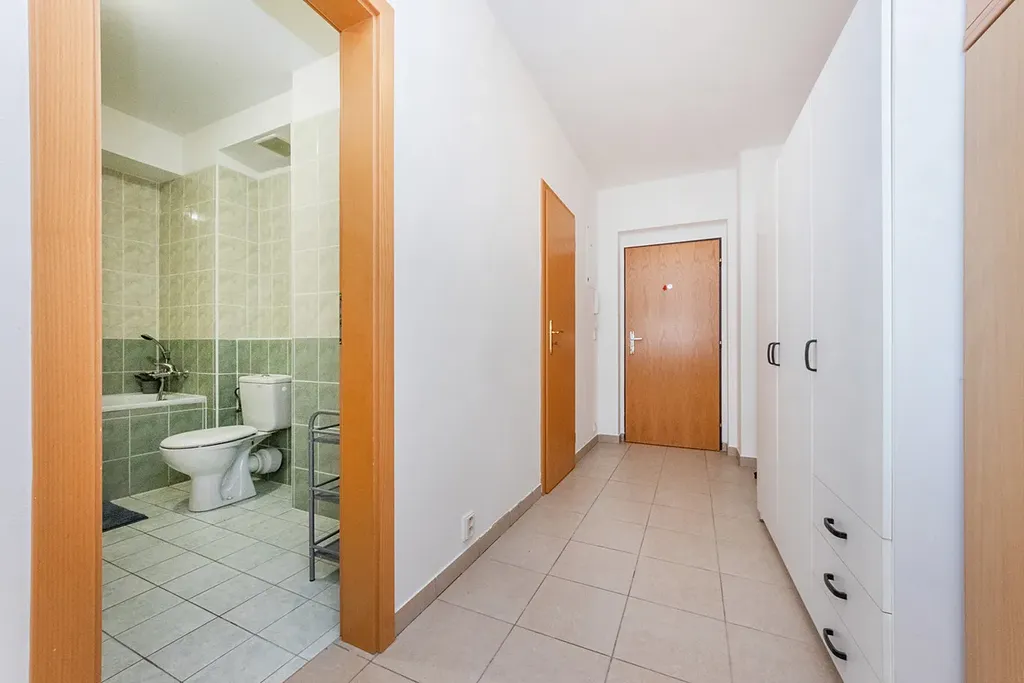 Dlouhodobý pronájem prostorného a světlého 1+kk, 42m2, 5 minut pěšky od zastávky metra Ládví, s možností parkování.