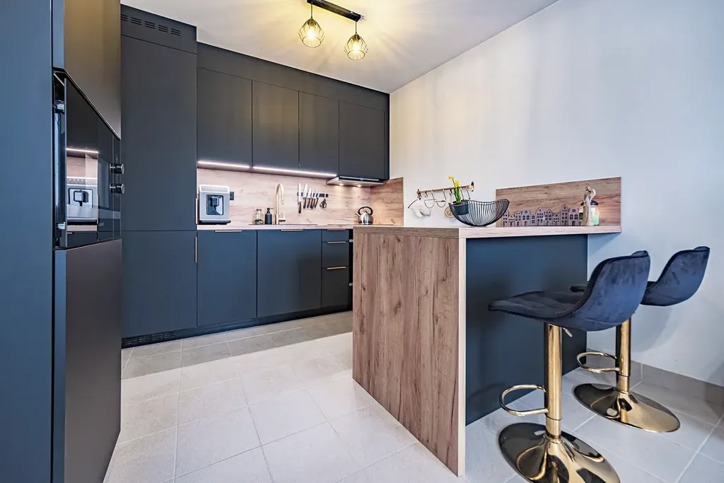 Nabízený byt se nachází ve 2. nadzemním podlaží cihlového domu a nabízí celkovou plochu 55,6 m², včetně zděného sklepa o velikosti 5,1 m². Dispozice bytu je prakticky řešená – světlý obývací pokoj s kuchyňským koutem, samostatná ložnice, koupelna s toaletou a předsíň tvoří příjemný a funkční celek. Veškerý nábytek je v celém bytě řešen truhlářem na míru, vše v nadstandardním provedení.