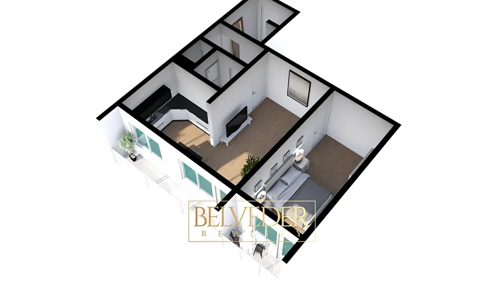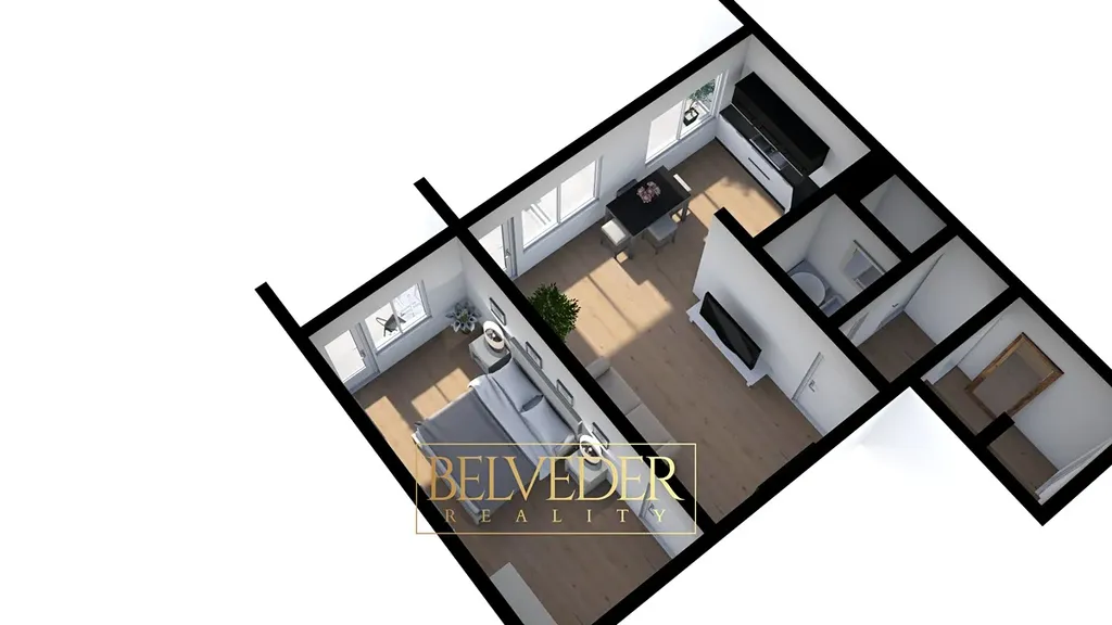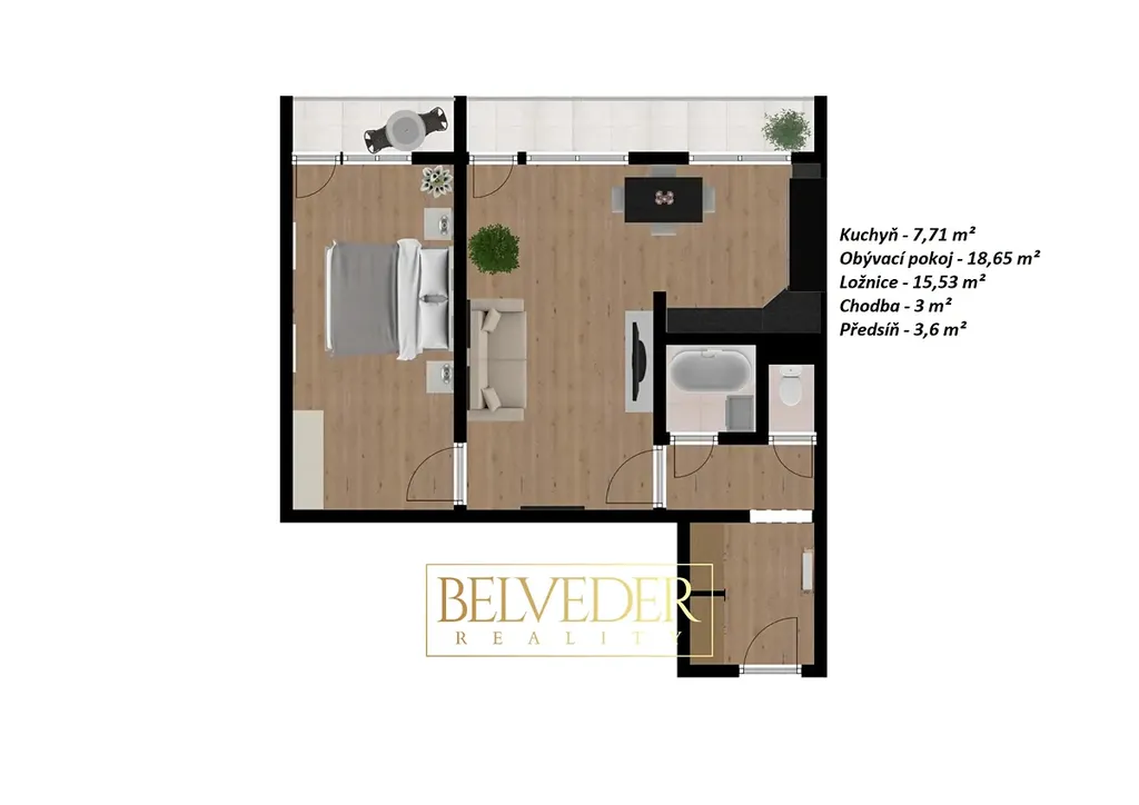 Výhodou bytu jsou dvě lodžie. Jedna je přístupná z obývacího pokoje a druhá ze samostatného pokoje.