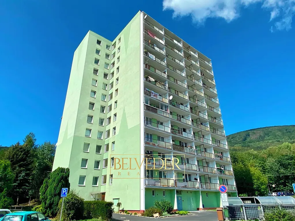 Byt se nachází ve 12. patře panelového domu s orientací na jižní stranu s krásným výhledem na les.