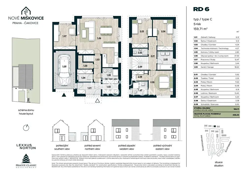 Nabízíme k prodeji prostorný rodinný dům o dispozici 5+kk v rezidenčním projektu Nové Miškovice, který vyniká velkorysou užitnou plochou 159,71 m² a vlastním pozemkem o velikosti 379,82 m². Dispozice domu je navržena s důrazem na pohodlný rodinný život, dostatek soukromí a přirozené propojení interiéru se zahradou.