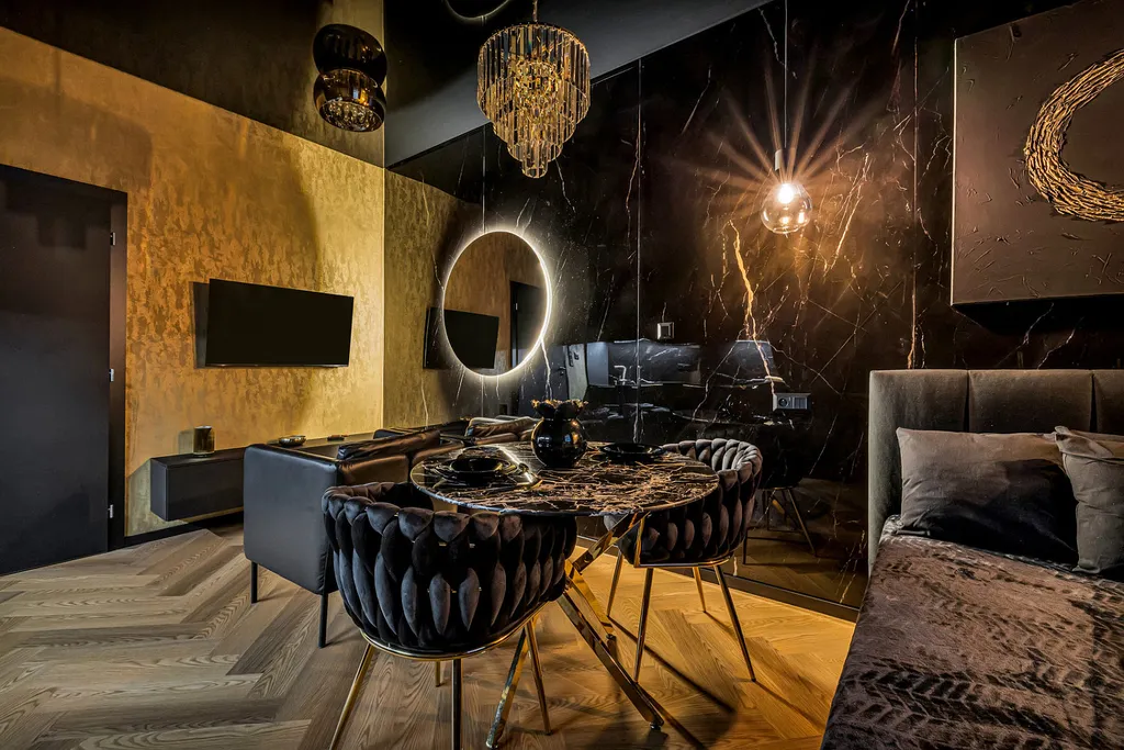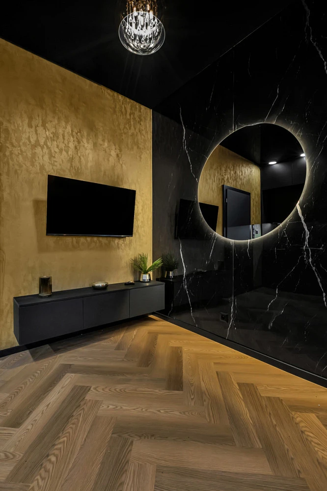 Byt po kompletní luxusní rekonstrukci vznikl jako designový koncept inspirovaný moderními evropskými interiéry. Každý detail byl pečlivě navržen tak, aby celek působil elegantně, kultivovaně a nadčasově.