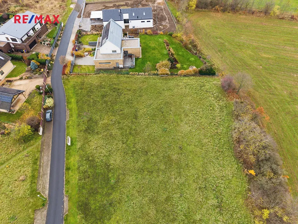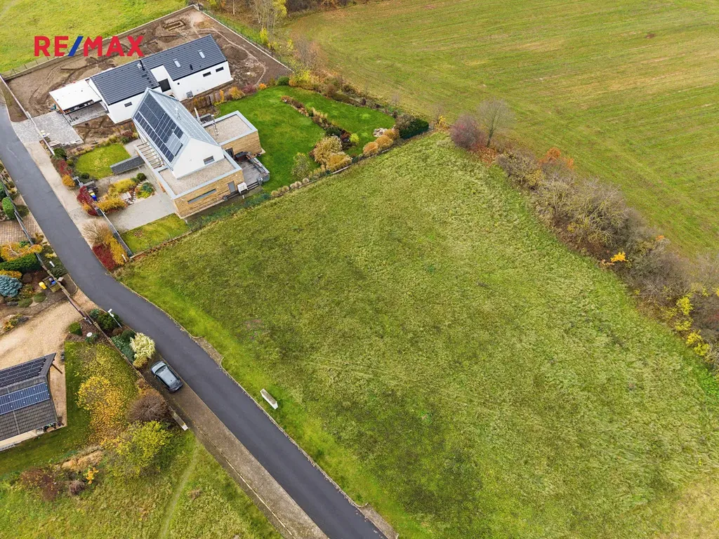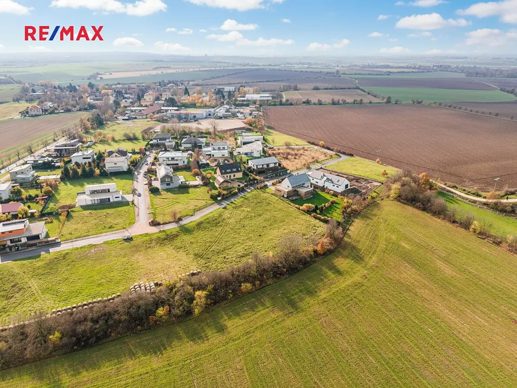 Pozemek má optimální výměru 1 760 m² a jeho tvar poskytuje značnou flexibilitu při umístění rodinného domu i zahradních úprav. Přístup je veden z místní asfaltové komunikace v obytné zóně. Na hranici pozemku jsou přivedeny všechny inženýrské sítě, včetně elektřiny, plynu, vodovodu i kanalizace, což výrazně usnadňuje a urychluje přípravu stavby. Součástí fotodokumentace jsou jak architektonické vizualizace, tak aktuální letecké záběry, které ukazují skutečný stav pozemku a jeho zasazení do okolní krajiny.