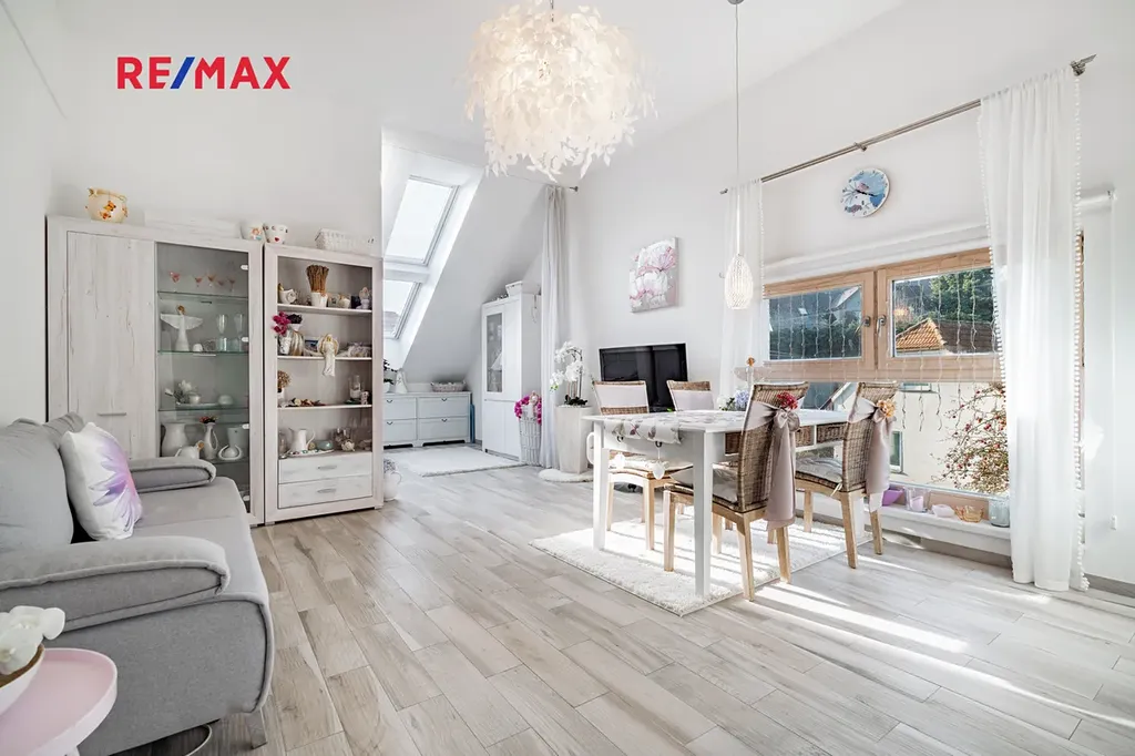 Byt nabízí výjimečně velkorysou výměru, díky které je možné prostor snadno rozdělit na obývací, spací i jídelní část, a to bez kompromisů. Díky umístění ve 2. patře a velkým oknům je interiér krásně světlý a působí velmi vzdušně.