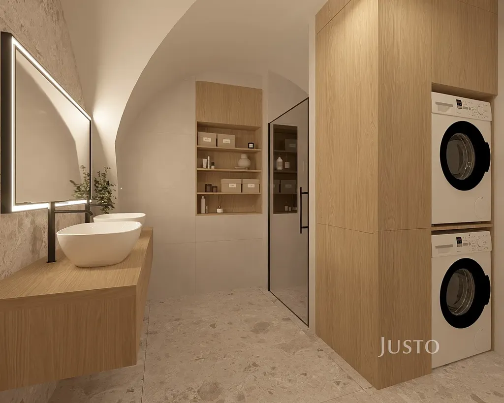 Součástí projektu jsou zastřešená parkovací stání v uzavřeném dvoře, který bude zabezpečen dálkově ovládanými vraty. Ke každému parkovacímu místu je připravena nabíječka pro elektromobil. O komfort a moderní způsob bydlení se stará inteligentní domácnost Loxone, připravenost na klimatizaci a efektivní technické řešení domu – vytápění plynovým kotlem a fotovoltaická elektrárna na střeše, která zajišťuje elektřinu pro společné prostory.