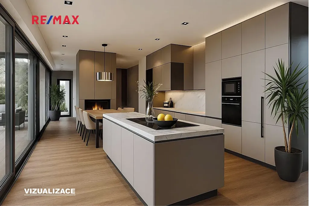 Nabízíme novostavbu luxusní vily 6+kk s užitnou plochou 310,1 m² na rozlehlém pozemku o velikosti 1372 m². Dům se nachází v nové rezidenční čtvrti Zátiší Lysolaje, která byla navržena ateliérem knesl kynčl architekti s důrazem na klid, soukromí a harmonii s okolní přírodou.