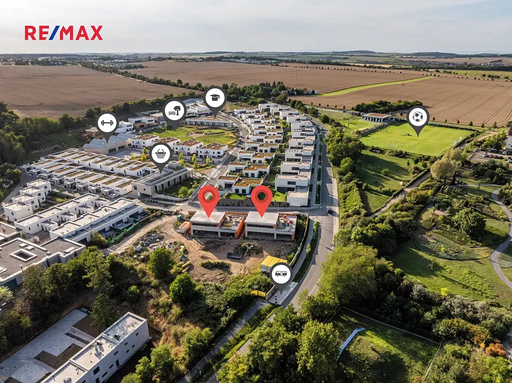 V místě je mateřská i základní škola, sportovní areál, fotbalové hřiště. Nedaleko OC Bořislavka i mezinárodní školy, restaurace, kavárny a obchody.