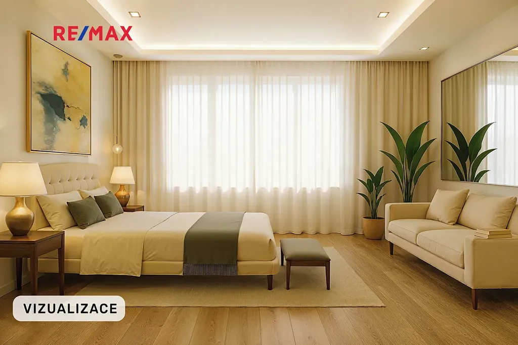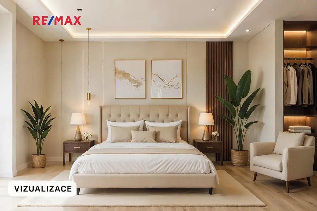 - ​hlavní ložnice se šatnou a soukromou koupelnou (sprchový kout, WC)