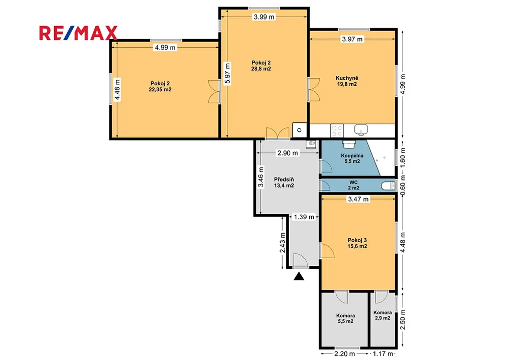 Byt má dle prohlášení vlastníka výměru 114 m², nicméně dle vlastního měření nabízí užitnou plochu přibližně 116 m², což zajišťuje nadstandardní prostor a vzdušnost ve všech místnostech. K bytu dále náleží prostorný sklep v suterénu domu a také velkorysá půda, která poskytuje další praktické úložné prostory. Vlastníci bytů mohou navíc využívat rozlehlou zahradu náležející k domu, která nabízí příjemné místo pro letní posezení a grilování, ale zároveň umožňuje i parkování.