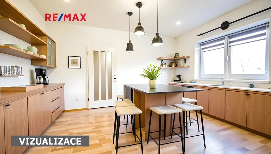 Fotografie interiéru domu jsou doplněny o vizualizace.