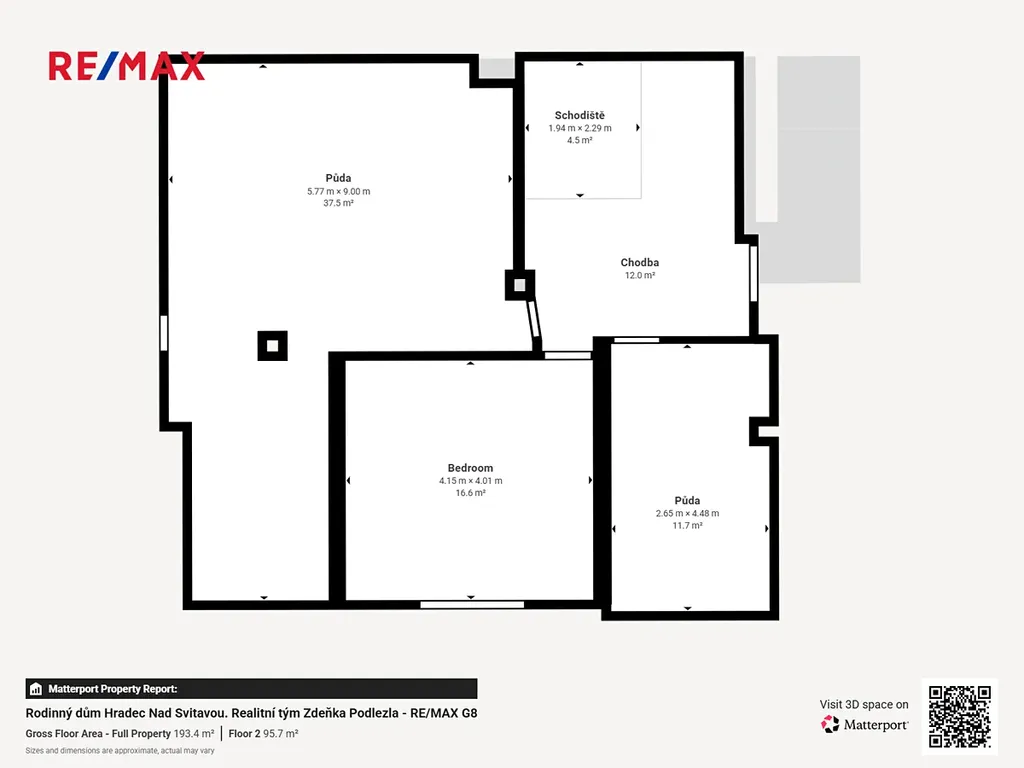 - 2.NP: samostatný pokoj, 2x skladovací prostor/půda (možnost rozšířit obytnou část - vybudovat další 2 pokoje),