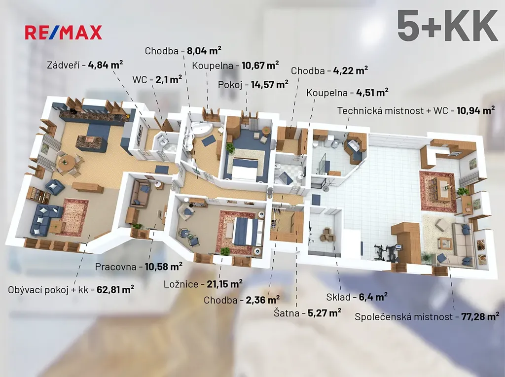 • Obývací pokoj s kuchyní a jídelnou (58 m²)