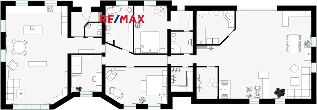 • Pro kancelář nebo admninistrativní zázemí lze využít jeden z pokojů, který má vlastní vstup i sociální zařízení