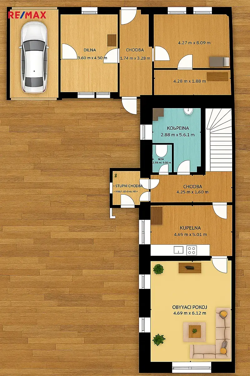 K dispozici jsou i úložné prostory (cca 60 m²) a půda s potenciálem dalšího využití (cca 110 m²).