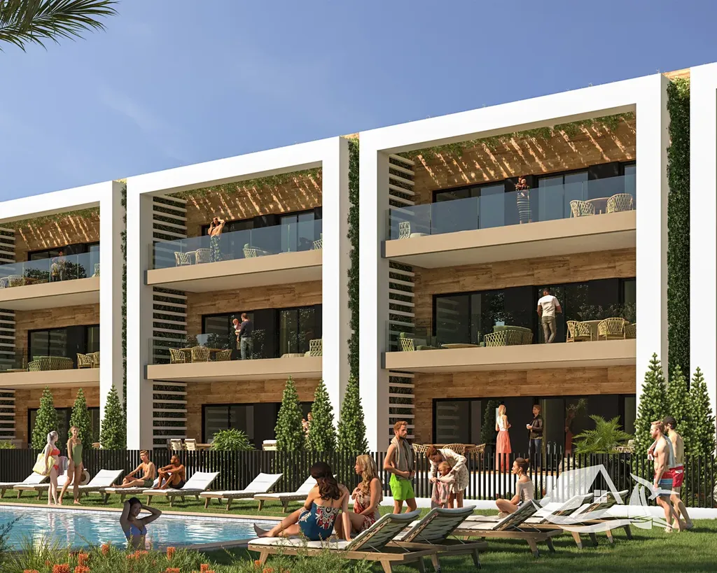 Exteriéry jsou koncipovány pro život venku. Každá jednotka disponuje vlastní terasou, která přirozeně rozšiřuje obytný prostor. Vybrané byty mají soukromé solárium a přízemní apartmány nabízejí vlastní zahrady jako ideální místo pro relaxaci nebo rodinná setkání. Některé domy disponují i vlastním bazénem, což přidává další úroveň komfortu během teplých dnů.