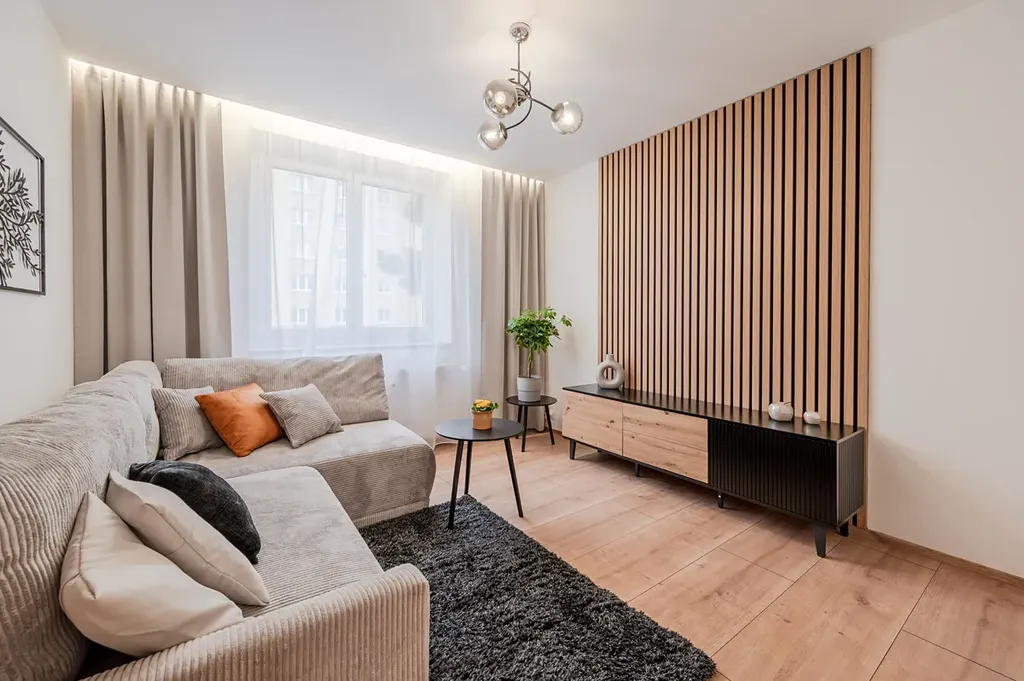 Byt prošel kompletní a velmi zdařilou rekonstrukcí - nové rozvody elektřiny, vody, odpadů, nové podlahy, stropy, štuky i malby.