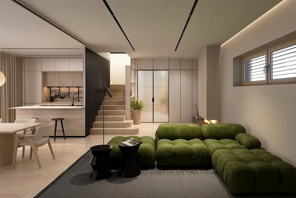 Dům je dispozice 6+kk s bohatým příslušenstvím. Když projdete hlavními dveřmi, ocitnete se v prostorném zádveří, kde je navržena opravdu stylová šatna pro odklad kabátů a obuvi. Ze zádveří je také vstup do koupelny s vanou, wc a také do spíže to aby jste s nákupem nemuseli chodit daleko. Prosklenými dveřmi dále vstoupíte do hlavního sálu této vily – obývacího pokoje. Tady se místem opravdu nešetřilo, je zde dostatek prostoru jak pro kuchyňský kout, tak pro jídelní stůl a také pro odpočinkovou část s krbem. V přízemí se dále nachází pokoj pro hosty, vlastní posilovna a také wellnes pokoj se saunou, ochlazovnou, místem pro relax a vstupem do zahrady.