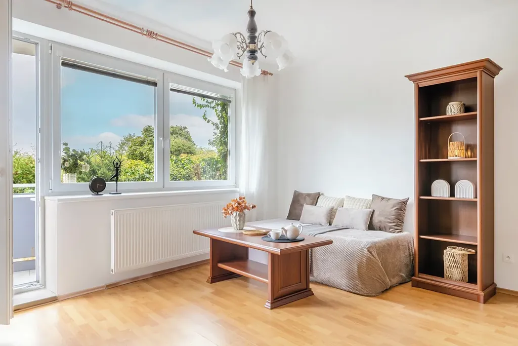 Z prostorné předsíně s dostatkem úložného prostoru plynule přejdete do hlavní obytné části. Zde najdete kuchyňskou linku s barovým pultem, obývací prostor se vstupem na balkon obklopený vzrostlou zelení. Samozřejmostí je koupelna s vanou. Byt je ve výborném stavu.