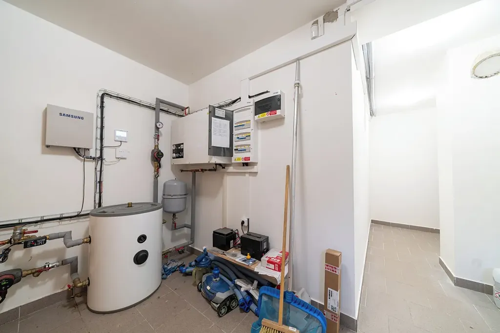 Tepelné čerpadlo vzduch–voda, elektřina 230/400 V, studna s úpravou vody a ČOV pro celý objekt. V obci je schválen projekt kanalizace a rozšíření vodovodu. Dům je nepodsklepený, ve velmi dobrém stavu, bez vlhkosti.