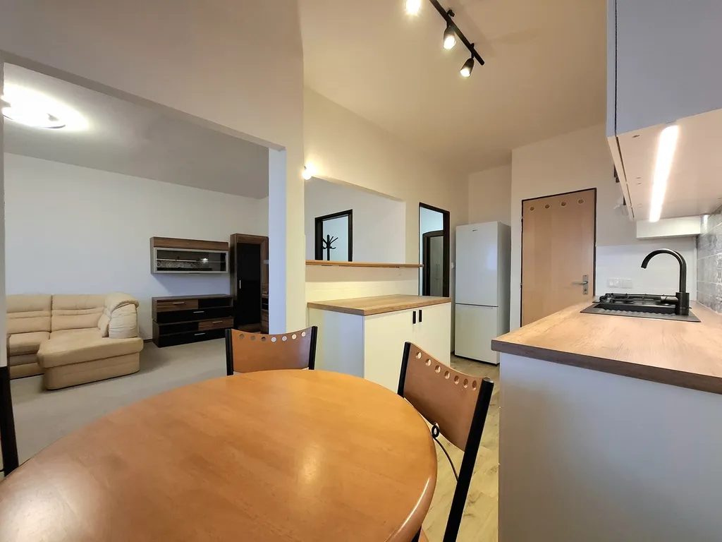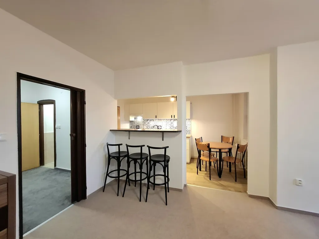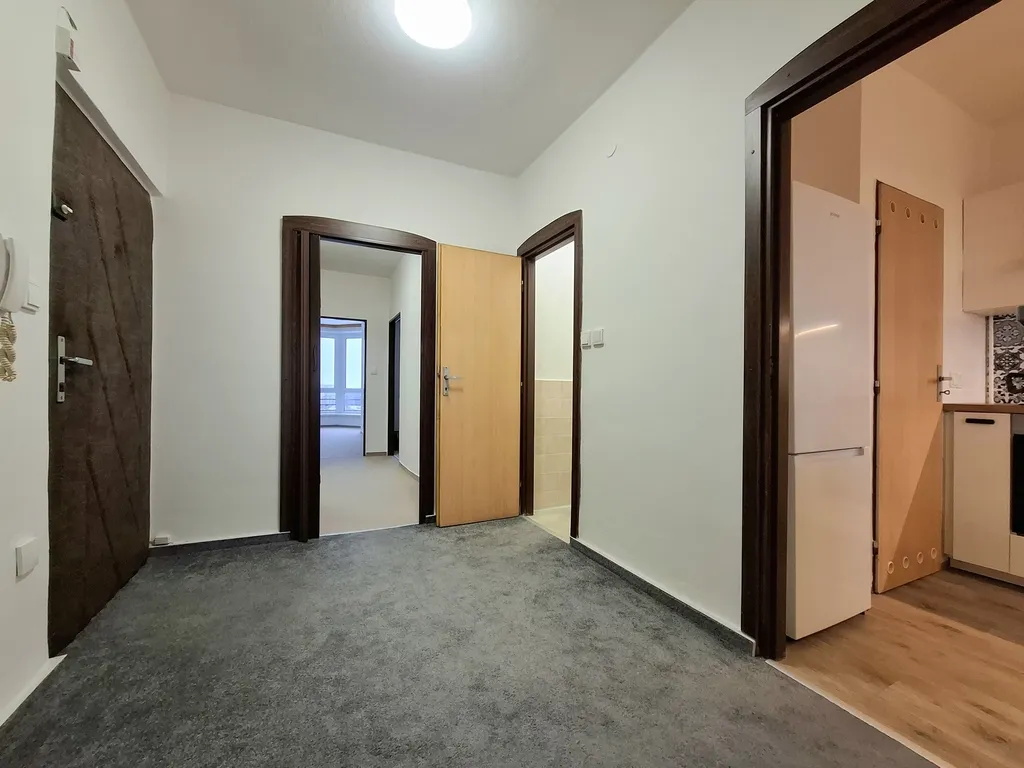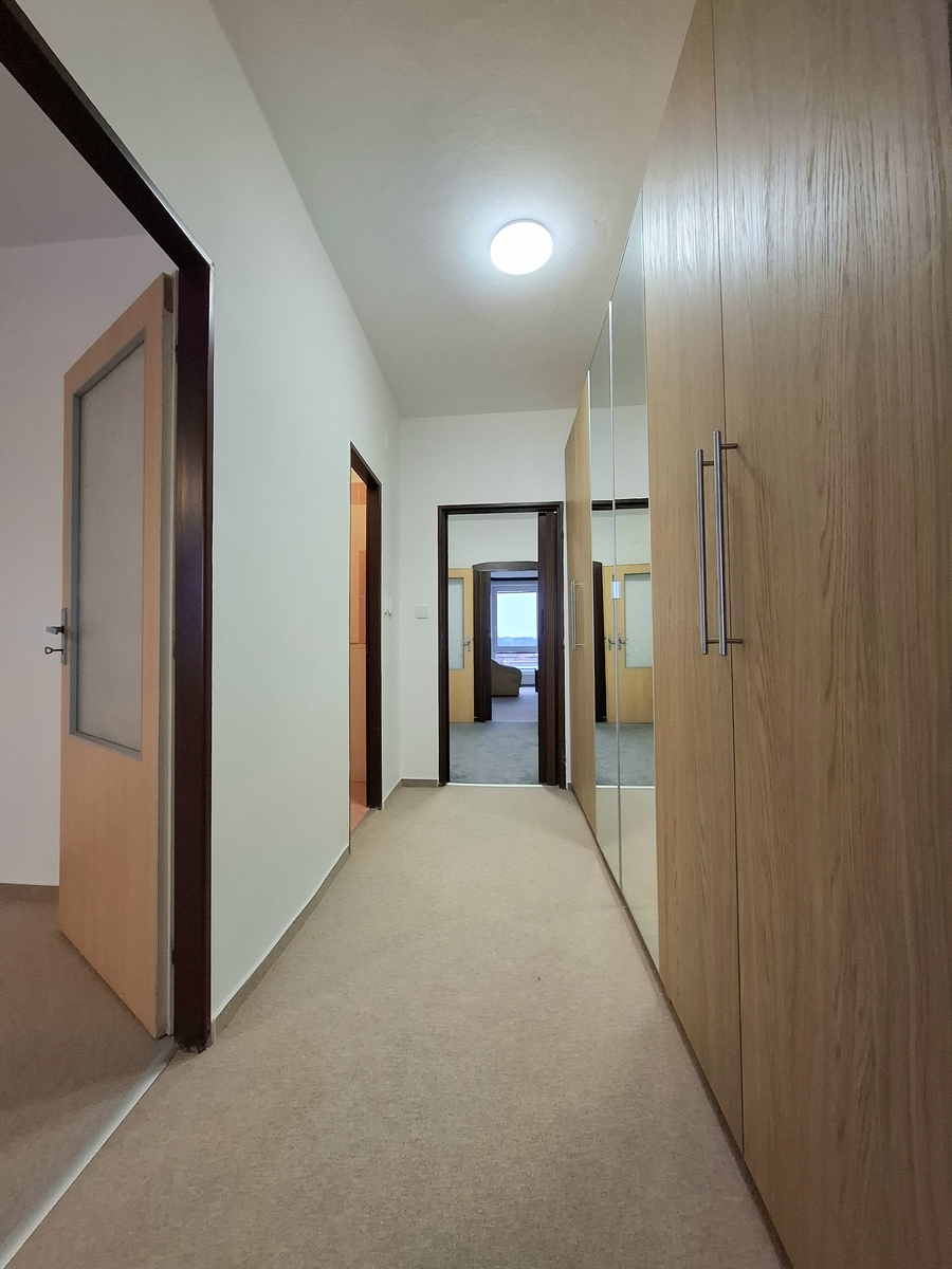Vybavení: Byt se pronajímá částečně vybavený. Kuchyně disponuje všemi potřebnými spotřebiči (lednice, trouba, myčka). K dispozici je i pračka. V předsíni oceníte velkou vestavěnou skříň s dostatkem úložného prostoru. V obývacím pokoji je pohovka, křeslo, konferenční stůl, komoda a skříňky.