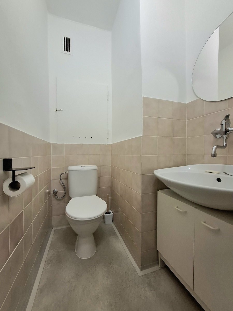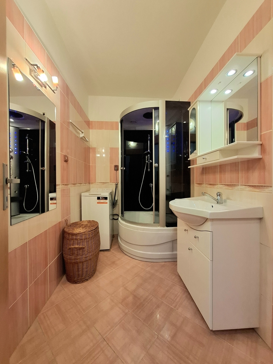 Koupelna je vybavena sprchovým koutem, toaleta je oddělená.